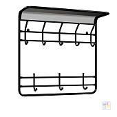 Вешалка настенная 2-ярусная с полкой 60х22х58см, черная